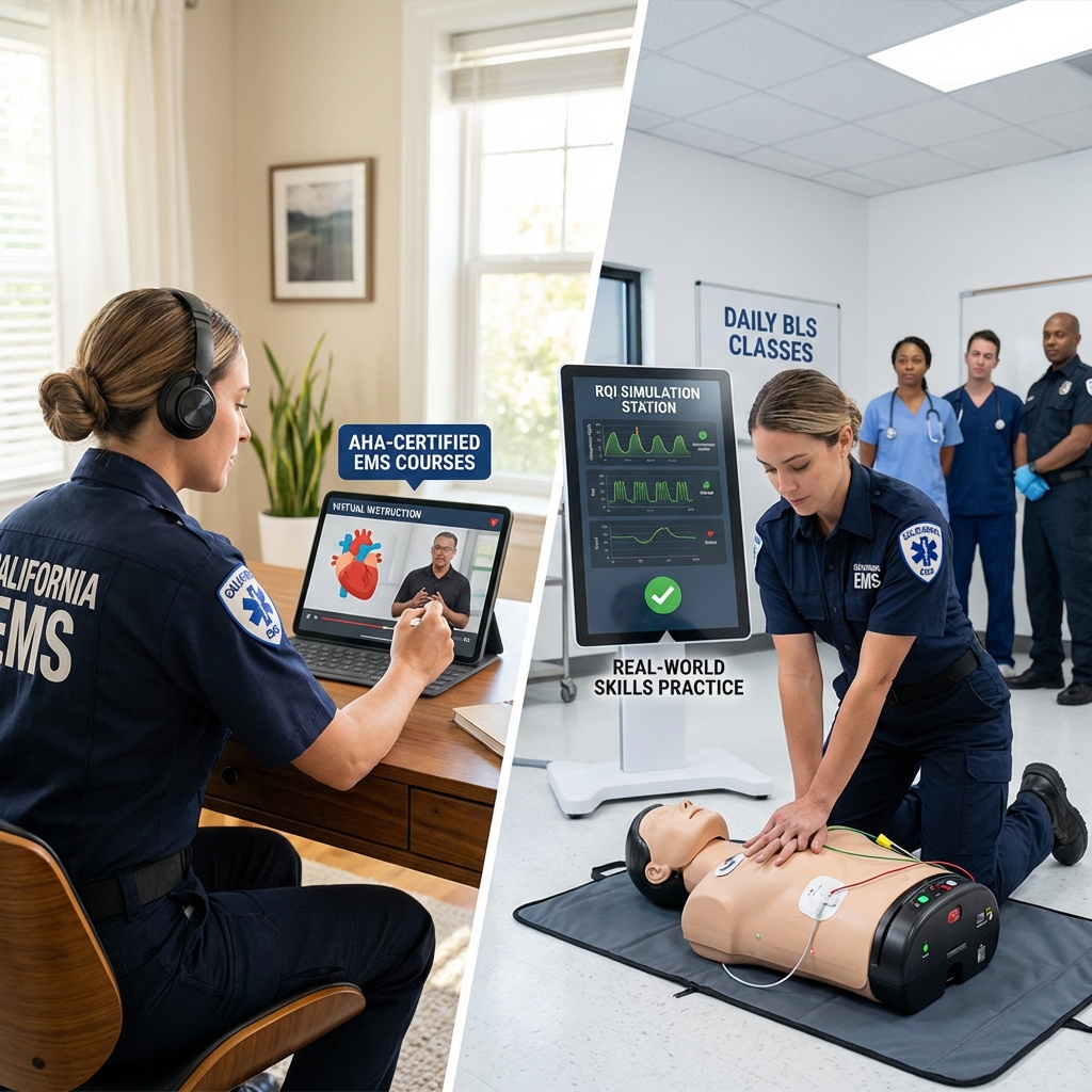 Healthcare professionals across California face a real challenge: you need American Heart Association (AHA)-certified training to maintain your license, but you’re working demanding shifts in hospitals, clinics, and field environments. Standard in-person-only courses demand full days away from work. Online-only programs leave you unprepared for the hands-on skills assessment you’ll face during certification.